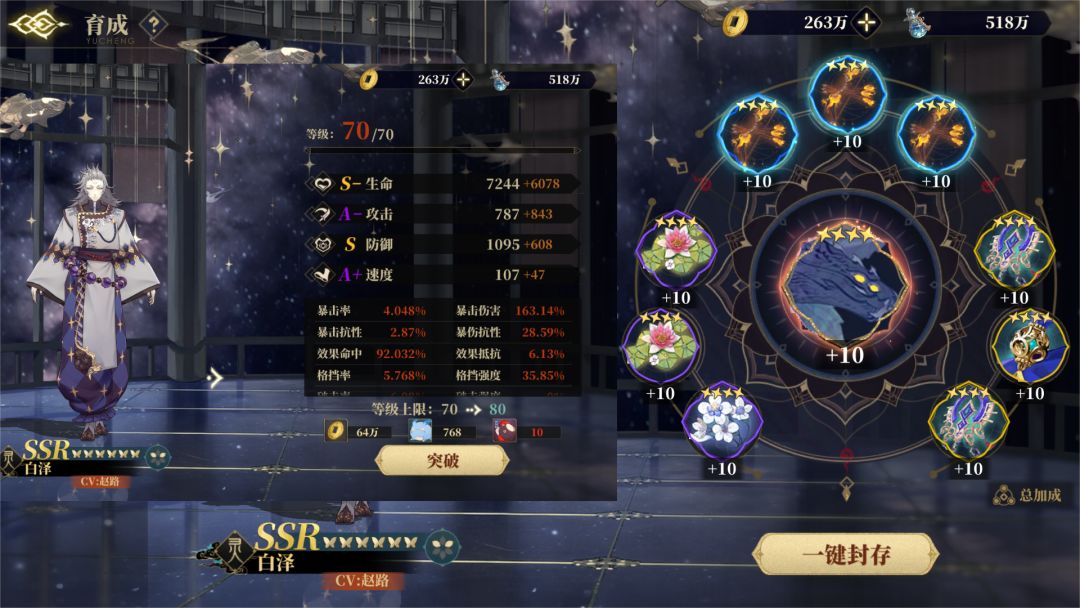 五速白泽只要效果不要速度,冲灵跟齐术的10%效果命中都点满才能这么高,一速打火才要速度。
