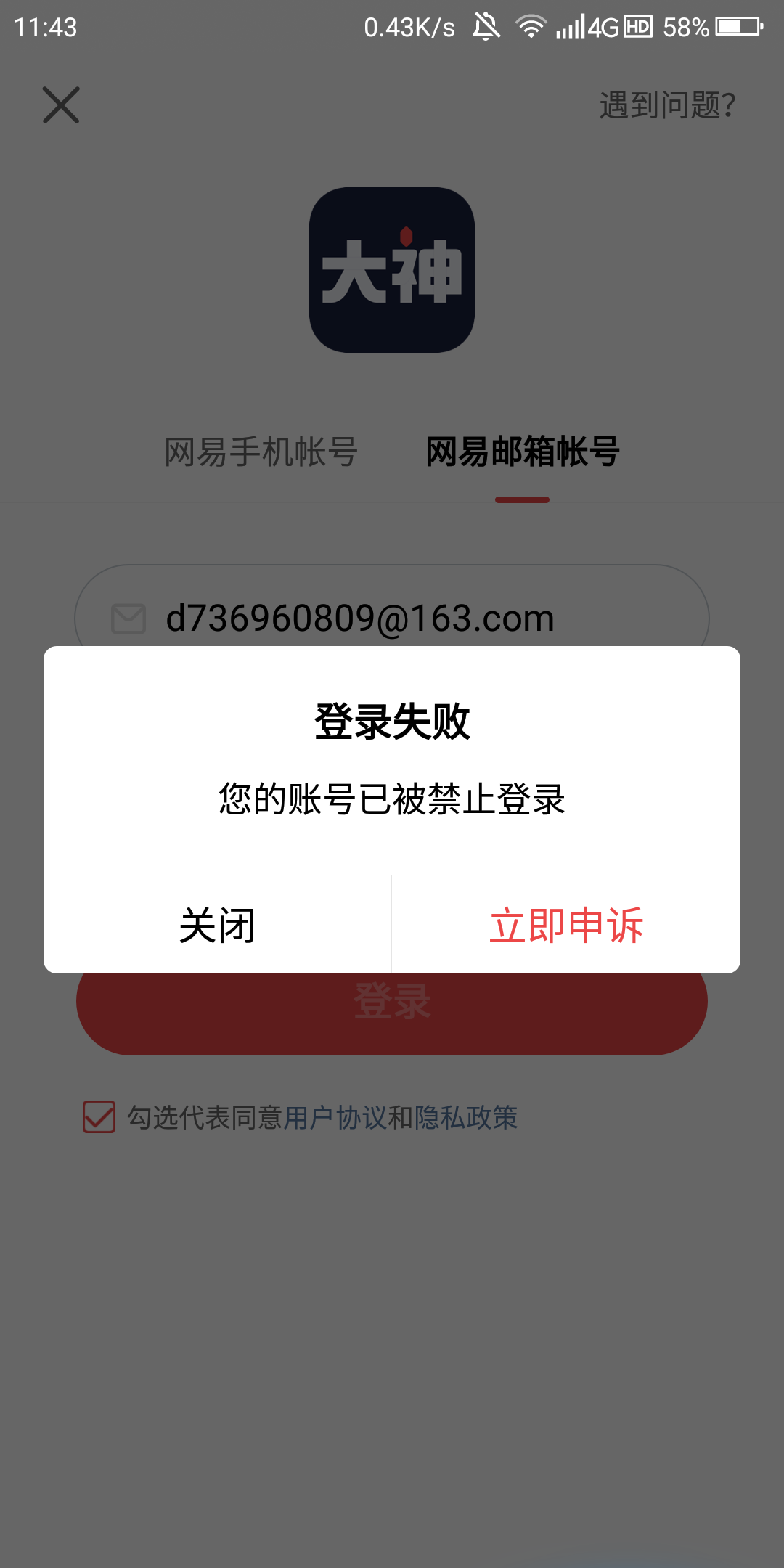 我想知道这是什么情况,还可以登陆阴阳师,但是登不了网易大神,求助大佬。