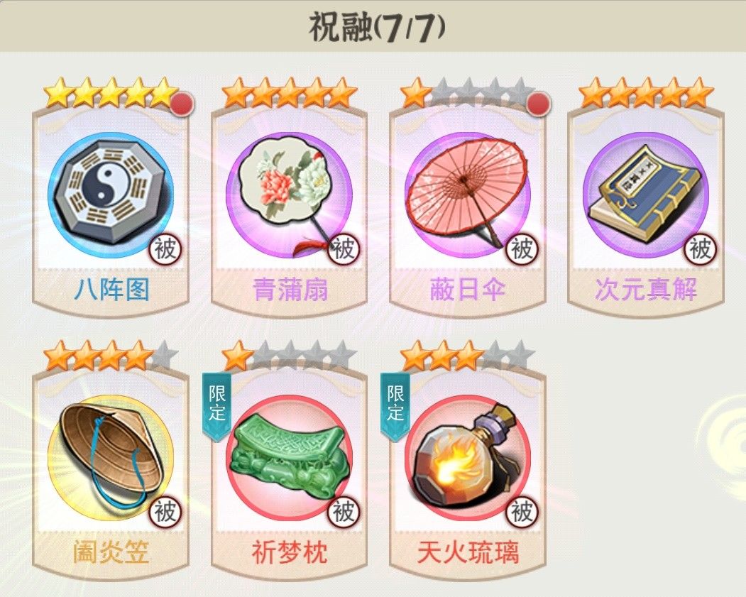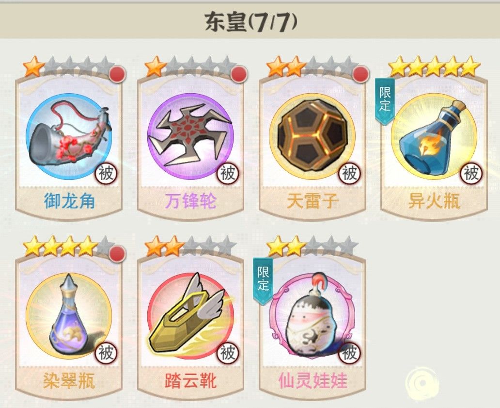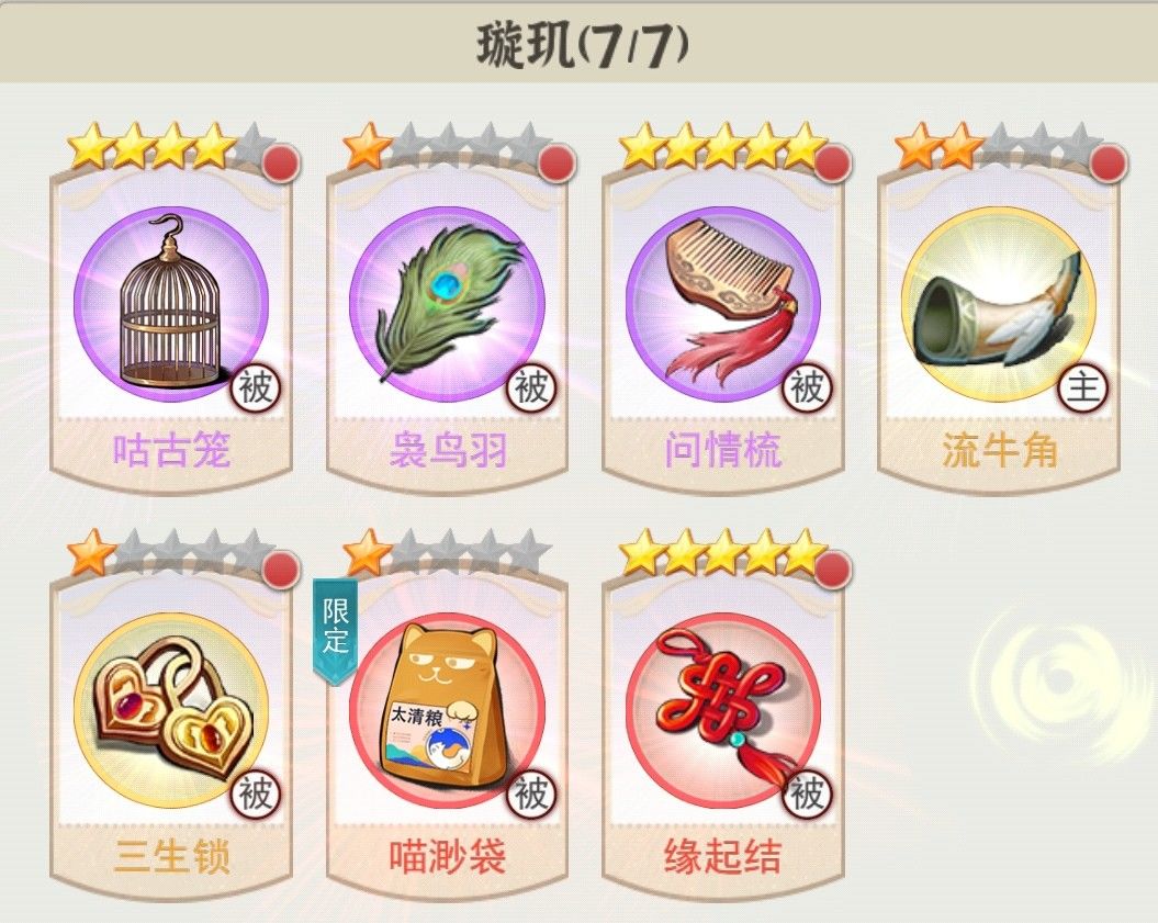 288积分1个,这个系列里有猫砂袋和缘起结两个红色法宝,不过对福源要求较高,这个箱子建议在玉人瓶和霖仙盏高星后再开,尽量把福源堆高,低于50w不建议开,不过这两个法宝都是大后期法宝,晚些再开也无所谓啦。