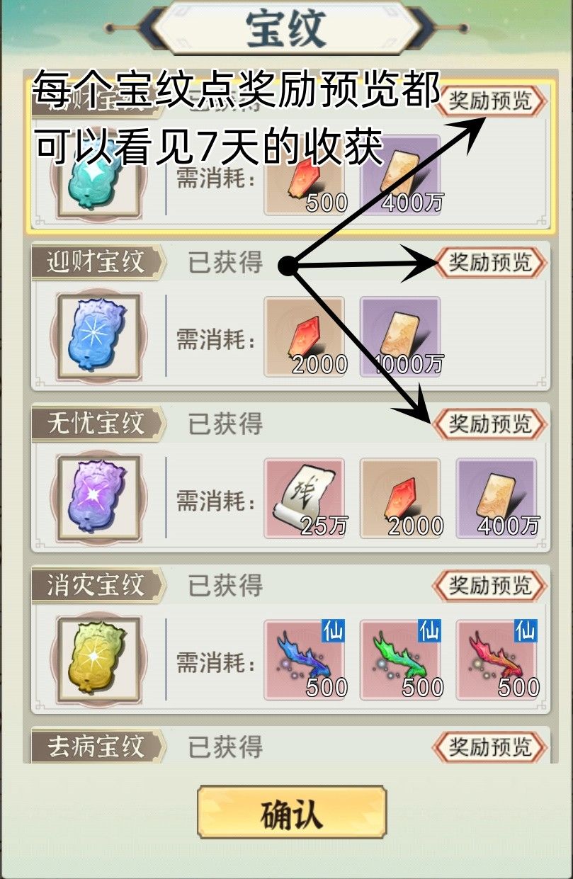 境界高了后优先选择消灾宝纹,其他宝纹都要消耗很多仙玉,所以对比消灾宝纹这个纯白嫖的宝纹没得比。
