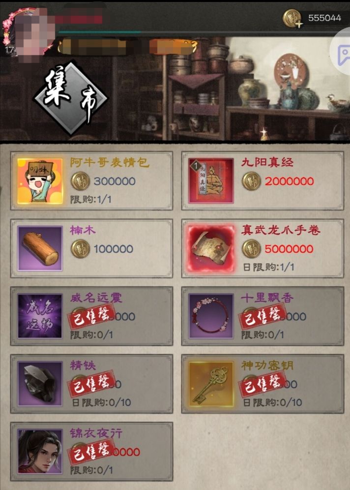 中后期:开服8天后,可以兑换玄铁,神功钥匙,九阳真经,楠木!