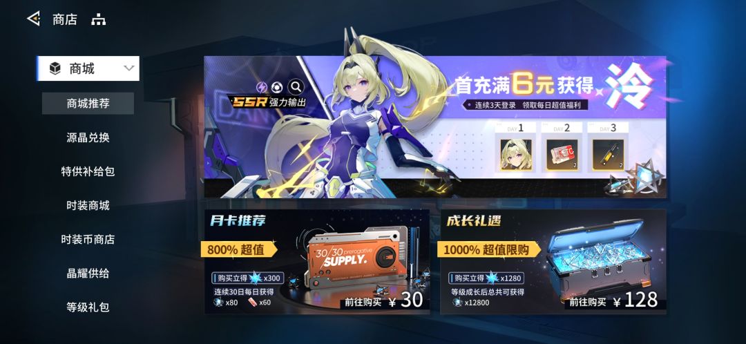 首充、月卡、成长礼,通行证有条件可以每个月氪一下