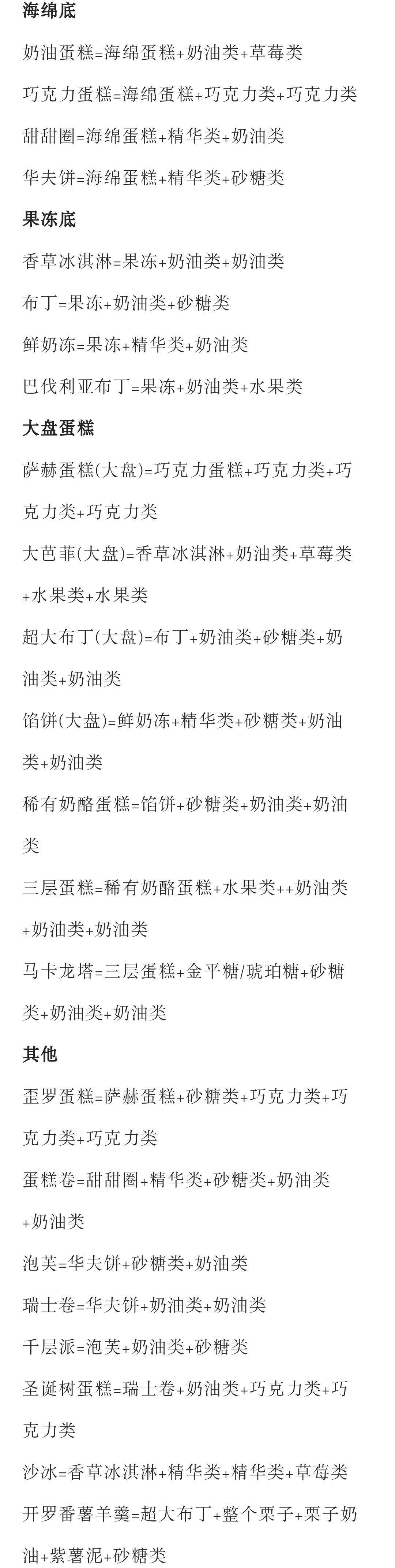 不同类型蛋糕的配方,以及食材的分类,来自九游,分享给大家看看