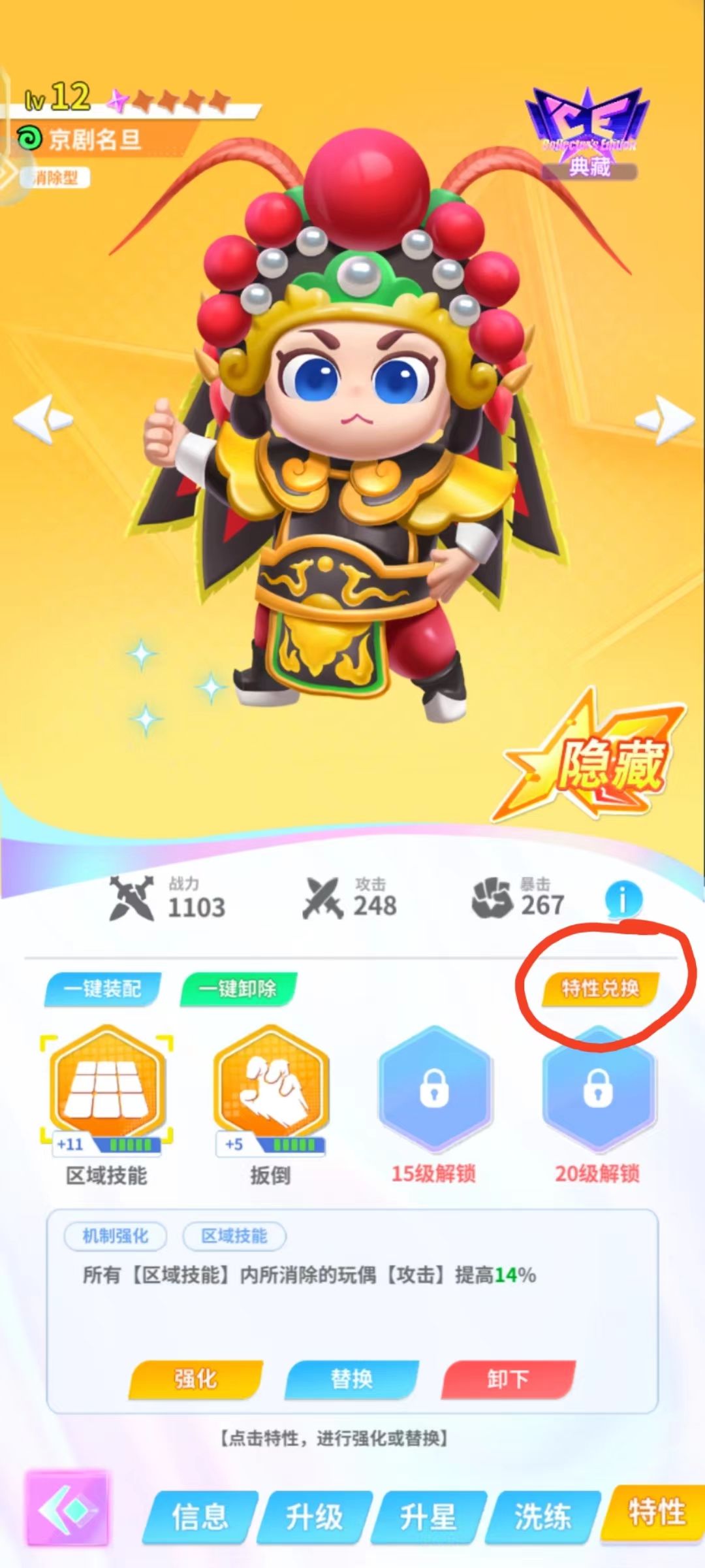 特性币唯一用途就是特性兑换,可定向兑换自己急需的特性,有概率获得高品质特性,前期不建议特性回收,新手可以将不用的低品质特性喂给高品质特性升级。下面是特性币的寻找路口: