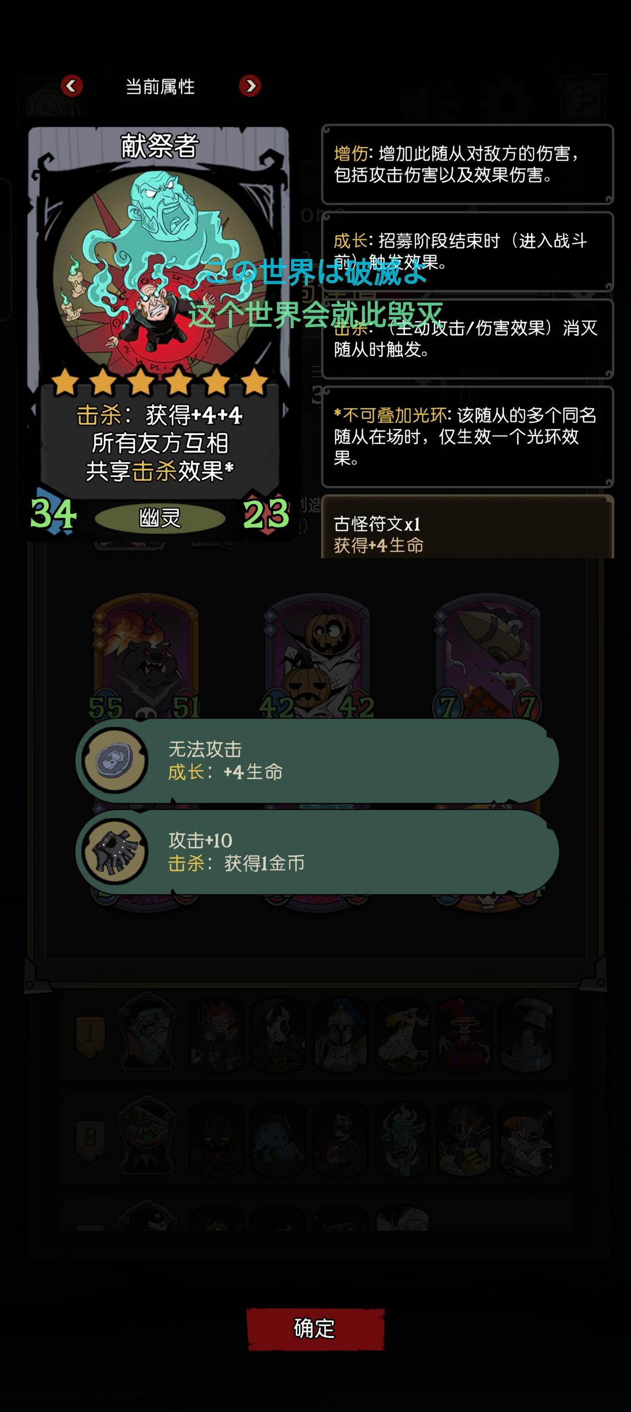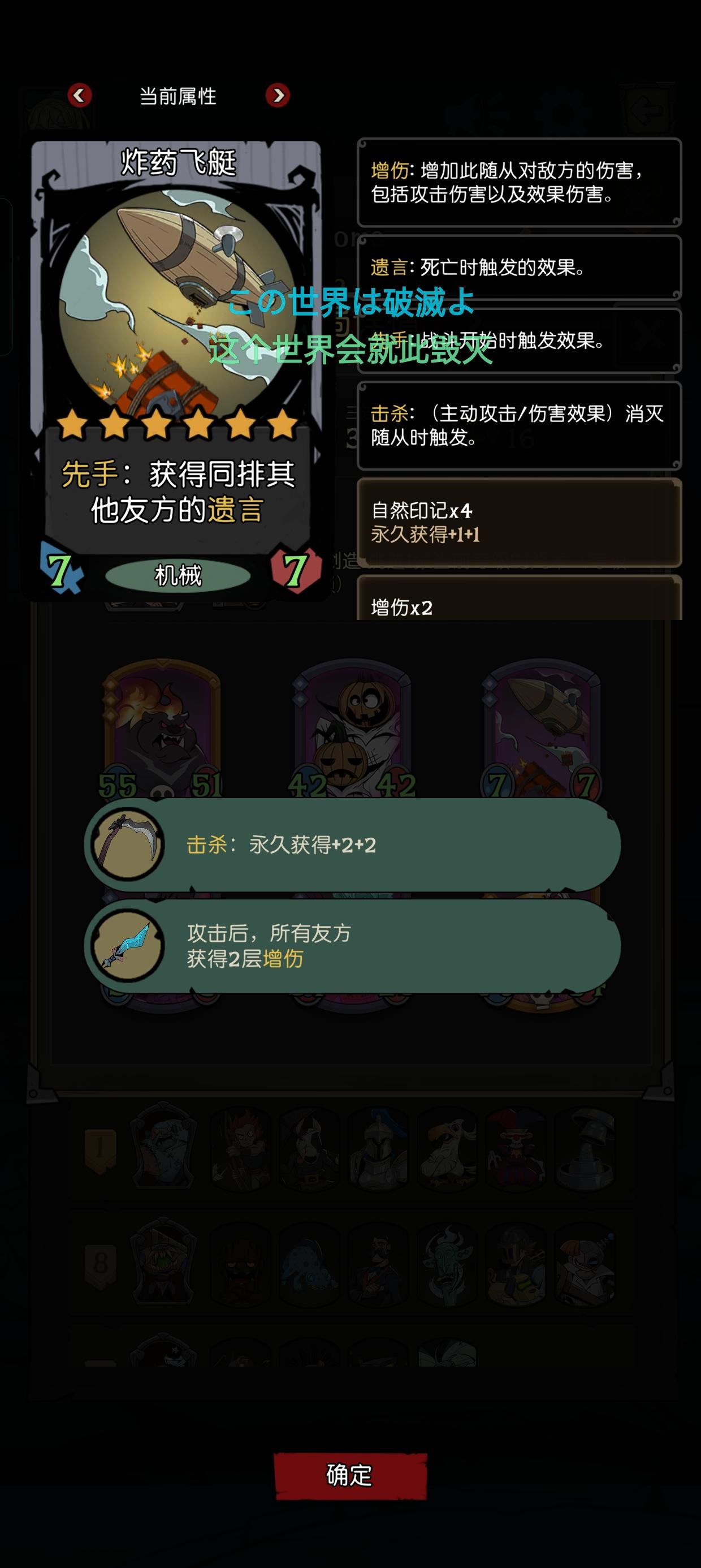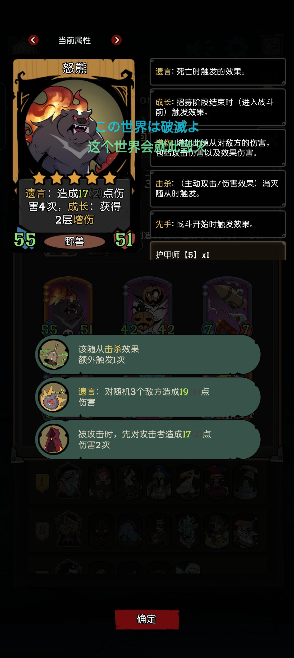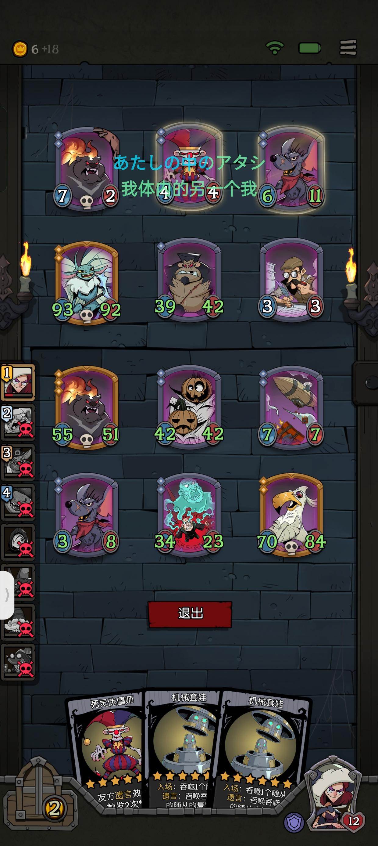 (大致发育思路和过程,好无聊可以不看)像这把玩女巫,前期能拿到金鸟掉血稍微减少点,然后就是捡到饮水机水经验,到四级就有厉害点的咒术+升金给的卡出了个遗言掉附着的,之后就是随便拼的机器人+憋怒熊节奏,最后就是升六级,找共杀,咒术拿先手遗言伤害了。在这个过程中还能找到诸如击杀加金币的手套,加属性的装备之类的。最后就是在找到共杀之后四五回合尽量结束游戏了(再拖就没击杀链了,最后一个都是靠遗言解的)