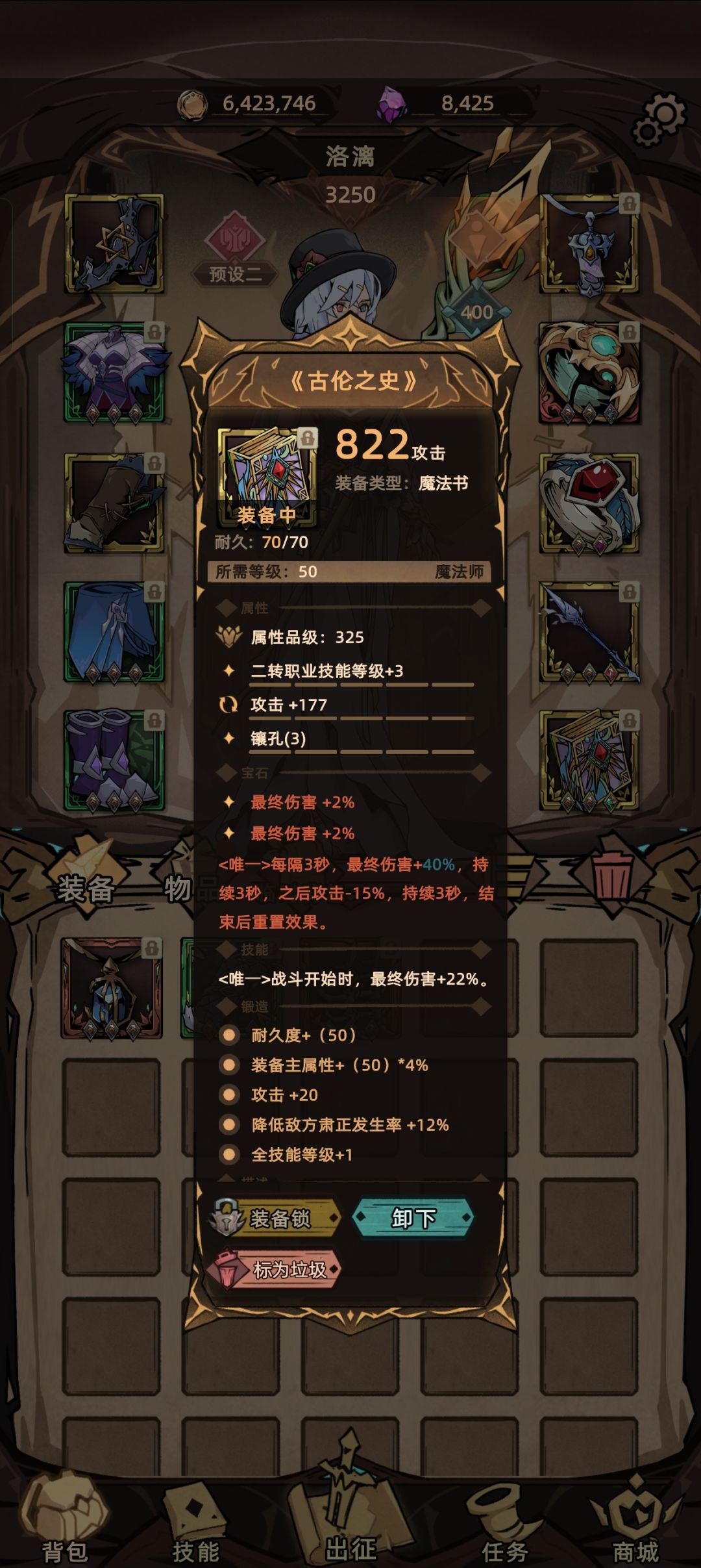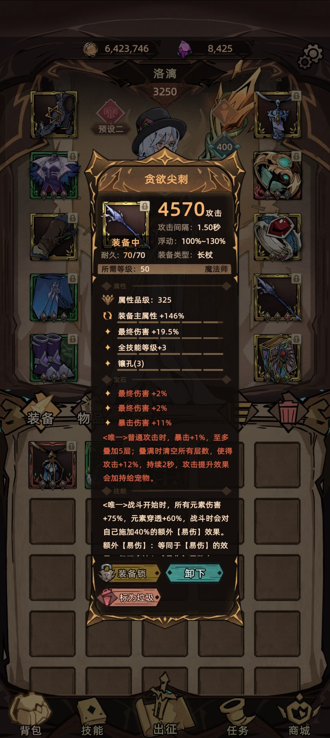 站街面板:终伤140,降肃正120%,全技能+15,暴击和爆伤属于锦上添花,不重要,核心输出还是得看混沌实验。装备孔位除传奇宝石外,全部镶嵌终伤符文![[表情_微笑]](https://img.tapimg.com/market/images/0f170d4b1ecf80c267e5a44b5992a199.png)