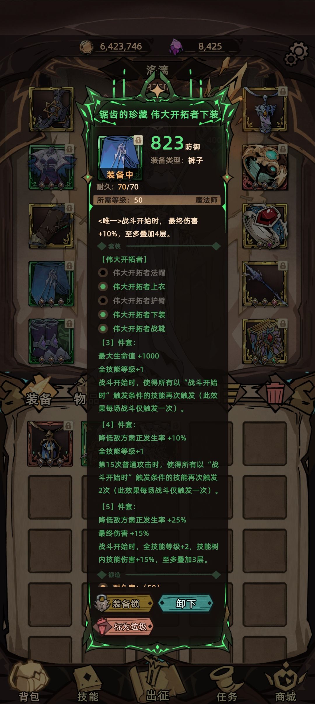 ⑦:衣服,下装,鞋子:选择最新的秘藏套搭配-2戒指凑出五件套效果。使用-1神器戒指的情况下可以把头盔换成套装,正塔不需要这么高的降肃正。秘藏套为商城抽奖兑换盒子开启。