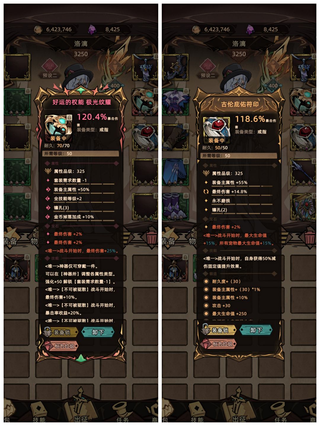 ④:戒指:神器戒指+古伦庇护符印,神器戒指-1-2都一样可用,古伦庇护符印为古伦内城10特殊掉落。