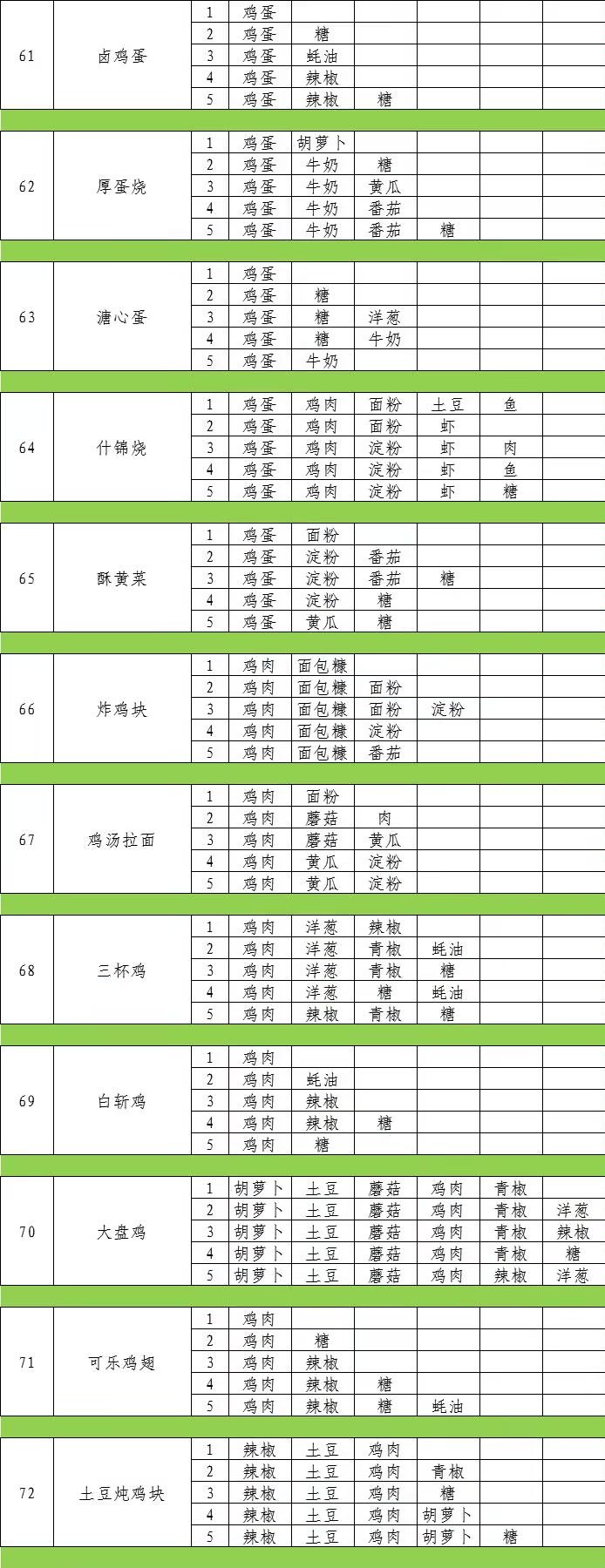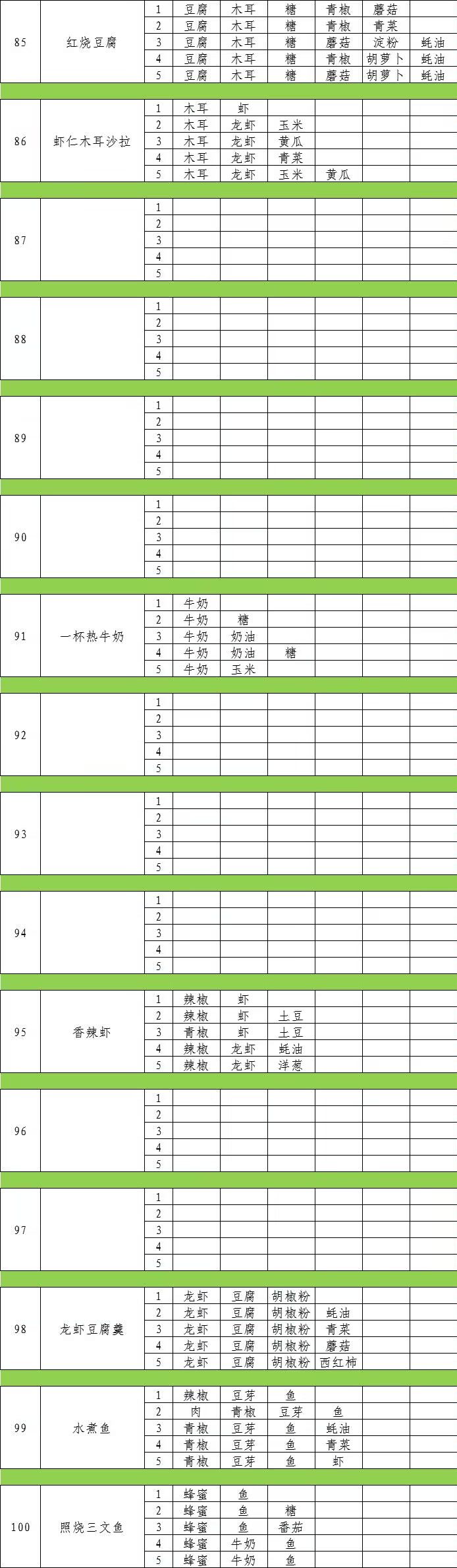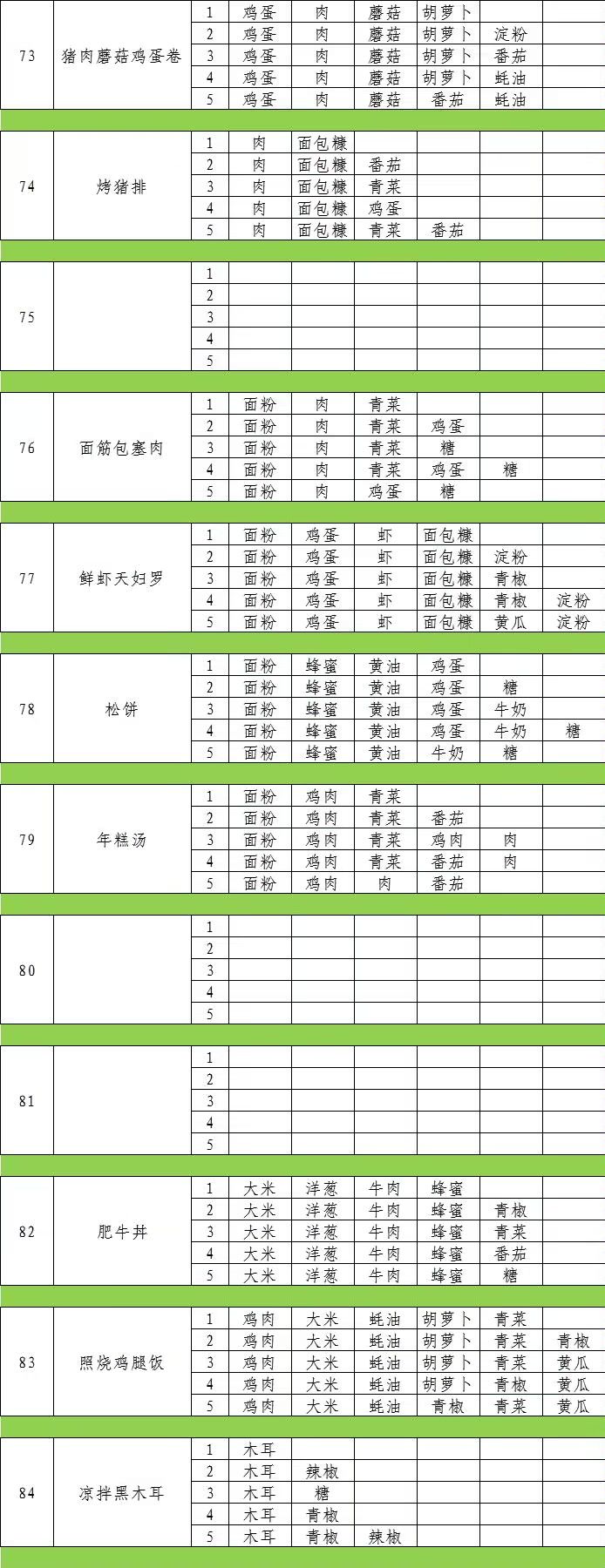 经过许多小伙伴们的热情呼唤,厨房菜品的各种配方终于是被我用表格整理出来啦~各位小伙伴们久等啦