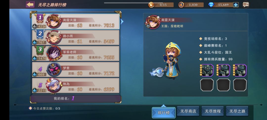 63层为女帝,有惊无险,盾骑成长起来输出也很恐怖。