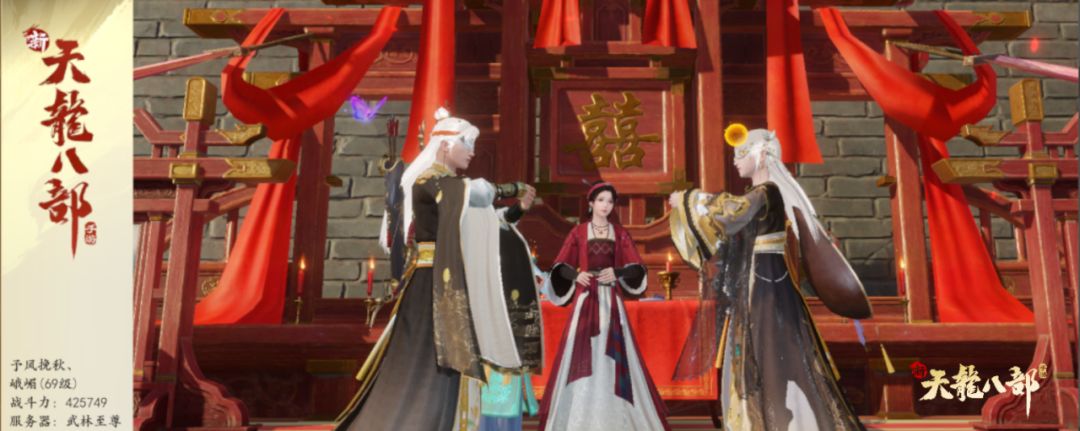 纵使天气转凉,不少少侠也不愿换下夏季穿搭,毕竟雪羽霜衣、仙侣情缘都是天龙经典记忆,凭颜值在整个网游史上占有一席之地的雪羽霜衣即便到今天也是各位少侠的心头好,如秋日枫叶般热烈吸睛的红色,果然和侠侣一起穿更甜!
