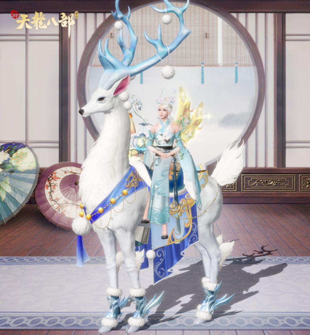 若论“江湖新宠”,不得不提紫色的鲛纱仙客坐骑,优雅的紫色与神鹿高贵的形象十分相配,少侠更是用染紫色的云歌露饮与之搭配,沐浴于夕阳之中,如同神女降世,浪漫典雅。