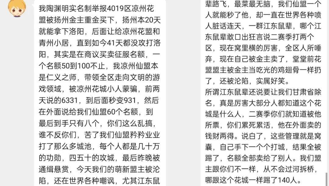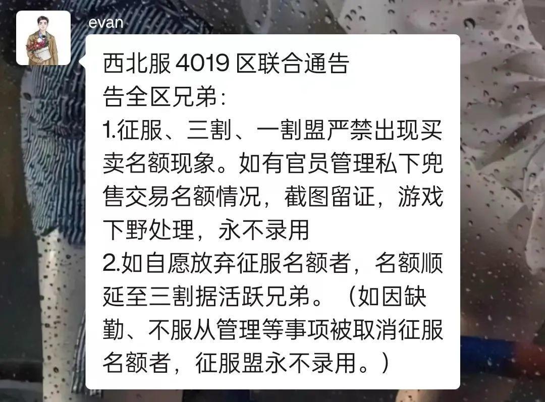 针对近日以陶渊明等人为首,多次强调并质疑 4019 管理卖名额事件,4019征服割据盟管理发布联合声明,陶渊明等人所发截图断章取义、歪曲事实毫,并做出提醒,谨防上当。