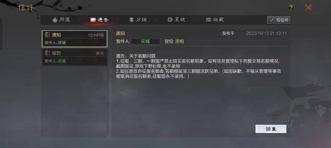 西北服4019征服盟通告