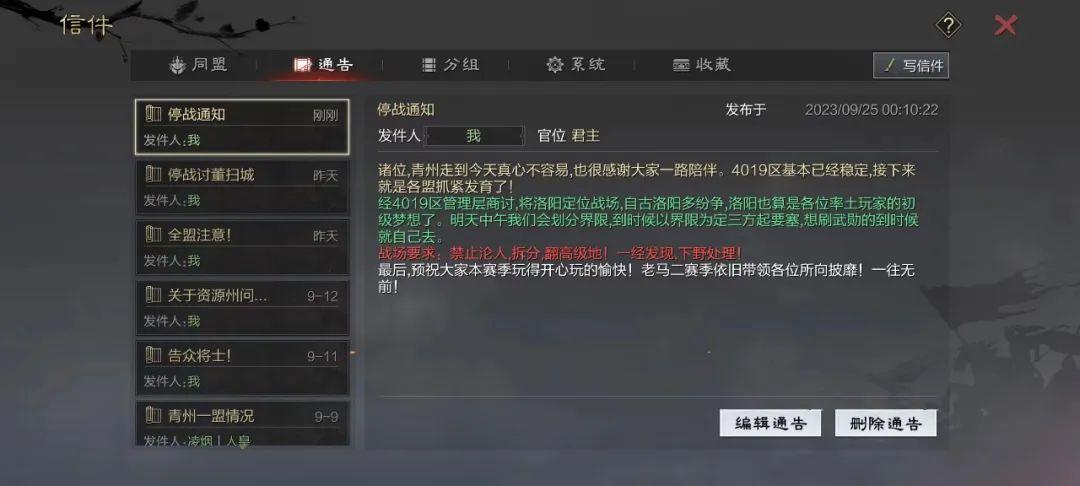 但4019区这次可是玩到了真三国。别人家的赛季末,定征服、分名额;4019区的赛季末,同盟反,起纷争,可谓体验了一把真三国的战斗。
