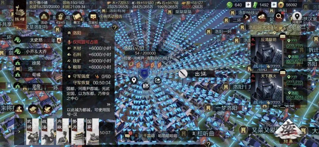 12日晚9点整,征服盟【花间钰】开始攻打洛阳,仅用时30秒打穿守军,于9点9分37秒拿下!