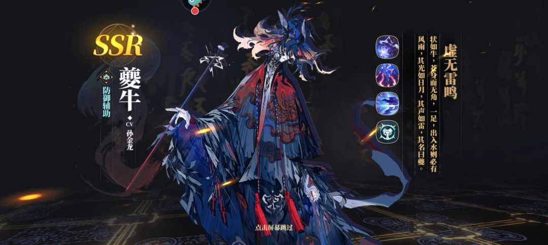 ②夔牛的二技能是多段攻击攻击,主要功能是让自身进去雷鸣状态,雷鸣状态下是必定嘲讽目标全体的,这个和自身的命中没有关,只要雷鸣状态存在,就会一直嘲讽对方,这个就是夔牛的优势所在,能够有效克制像共工、天狗这类输出。