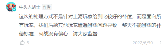 本次影响时间为6月27日至6月30日,不满4天按4天计算,因此针对期间均不能登录游戏的玩家按4天足额发放补偿奖励。
