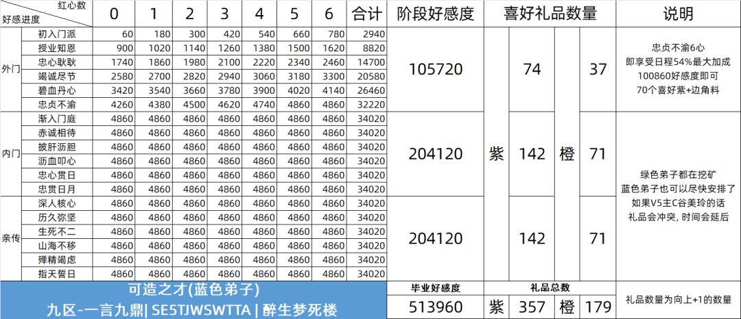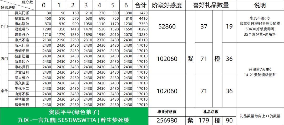 绿色弟子对应需要的礼物(前期小宋主C,因为太乙剑是最好拿的随4功法)