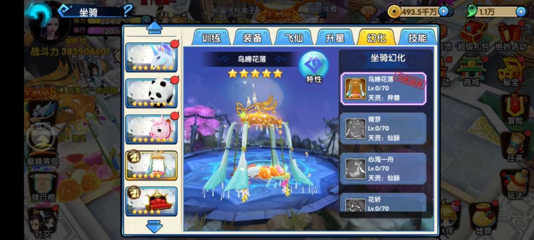 炫美中国风鸟蹄花落双人坐骑,拥有一套完整的坐骑装备打仙剑,打副本,尤其是打排位可以一打多,晋级不灭神尊必要的装备,高端玩家非常依赖坐骑装备的属性。