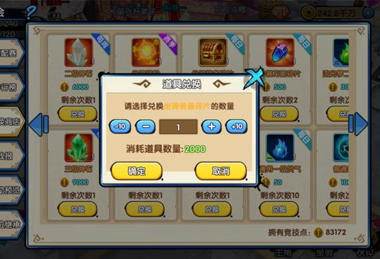 2:仙剑,打仙剑达到大师段位可以每日2000点兑换一个坐骑碎片,达到巅峰可以每日兑换2个碎片。