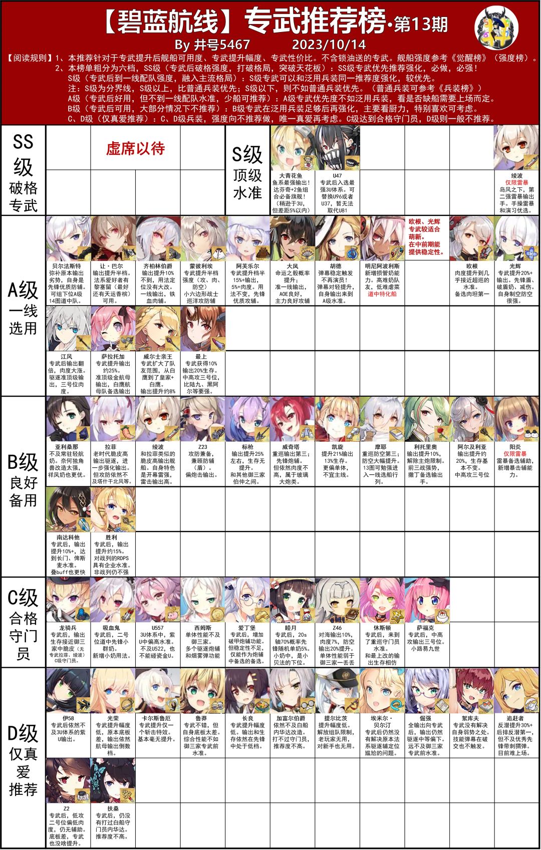 2、新增扶桑,D级。专武后,输出依然不如白船守门员内华达,推荐度不高。
