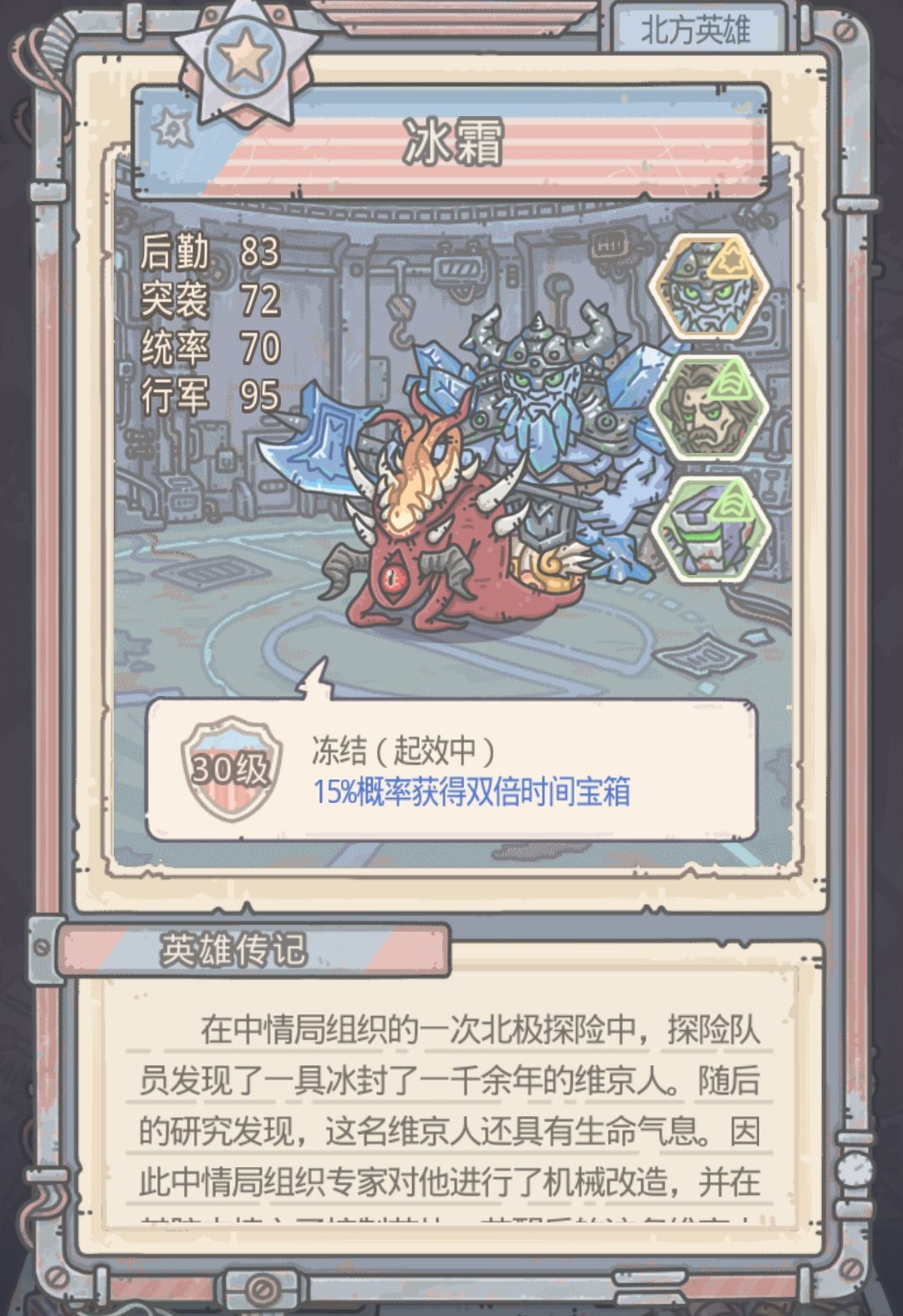 米国的英雄技能建议配(加成: 细胞 时间宝箱 15%卡片 黑蝌蚪的不建议可以地缝换或刷华夏 )