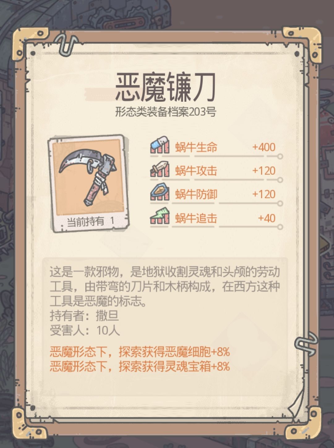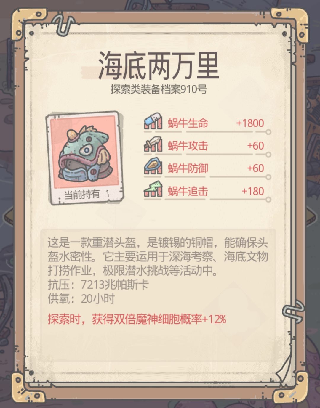 装备形态建议恶魔或活尸(推荐恶魔形态,米国的恶魔细胞还是很可观,快点六阶工会的战斗也快上线了)带 大科学家(时间宝箱)、百万吨支撑(探索速度)、海底两万里(魔神细胞)特性米国的挂机