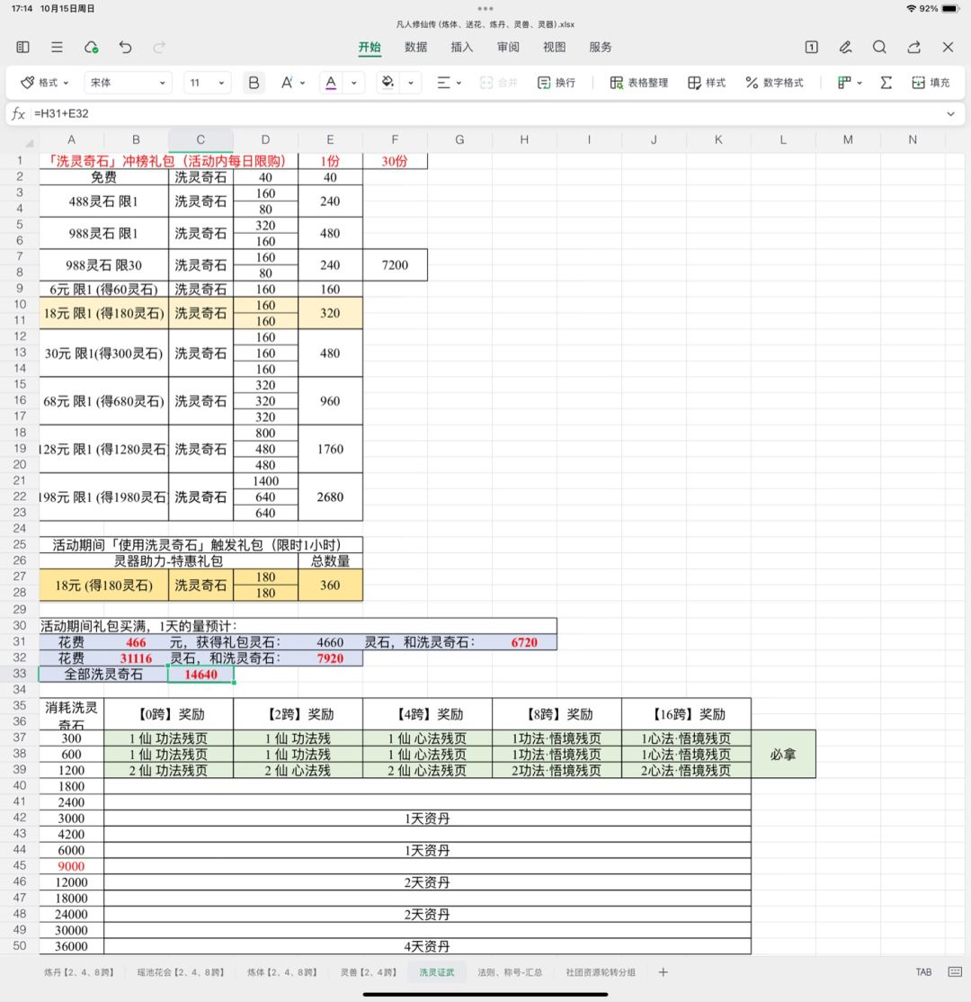 我是7月下旬开始做记录的,那时候第一轮8跨开始,本来想每个活动8跨做一期汇总,比如:冲榜商店礼包买满花多少米得多少道具啊,活动内任务榜的奖励啊,预赛-2跨-4跨-8跨-16跨奖励都有多少啊,之类的统计表。奈何活动周期太长,8跨没轮完,16跨又上了。