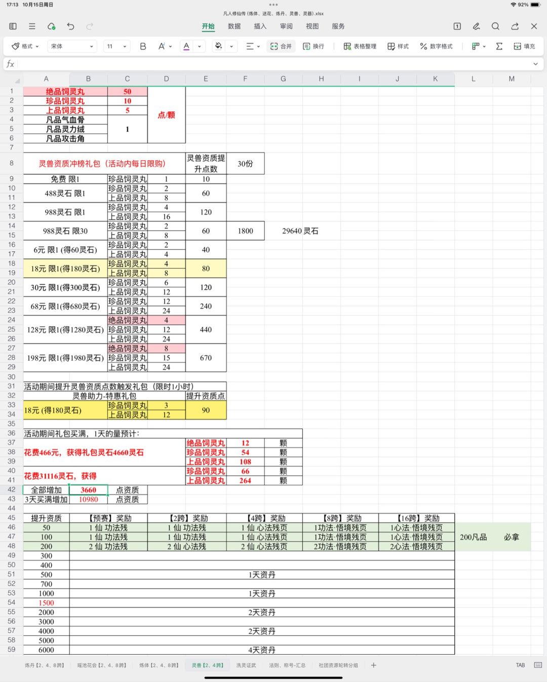 【炼丹-仙花-炼体-灵兽-洗灵】冲榜礼包记录