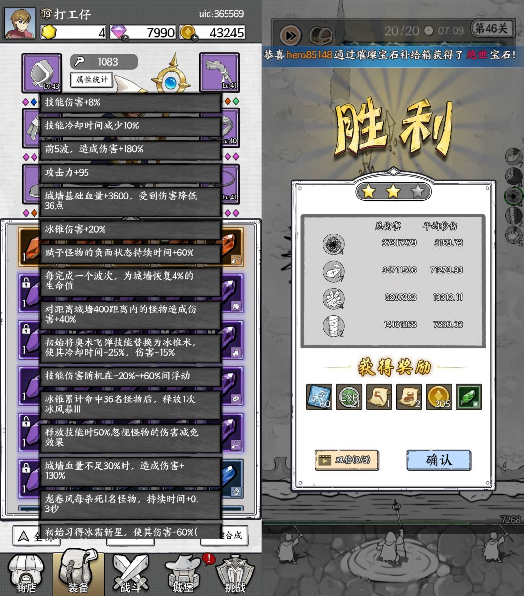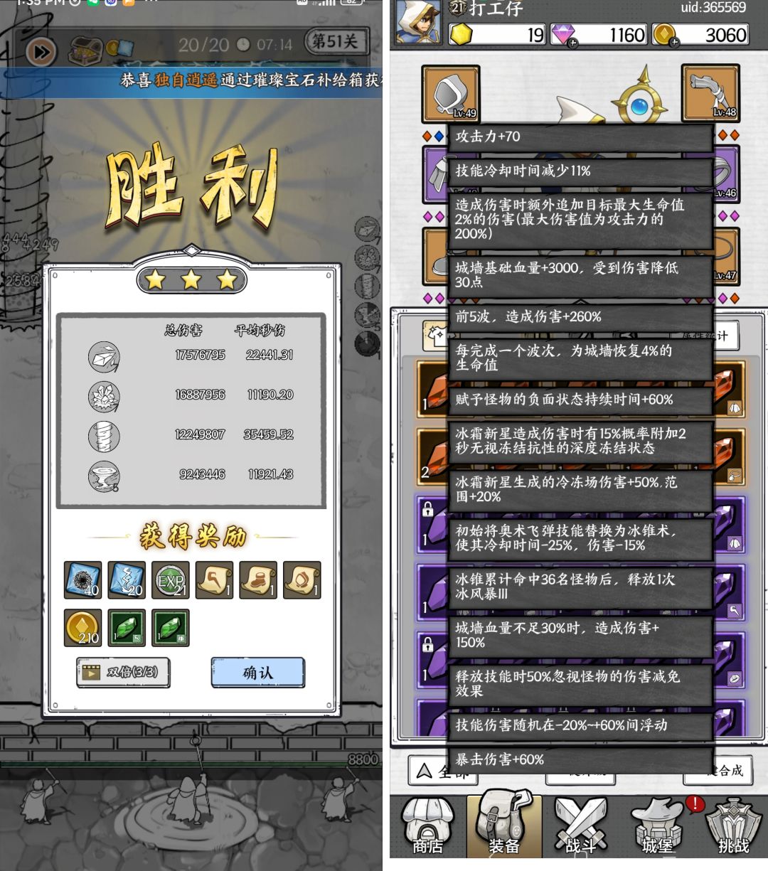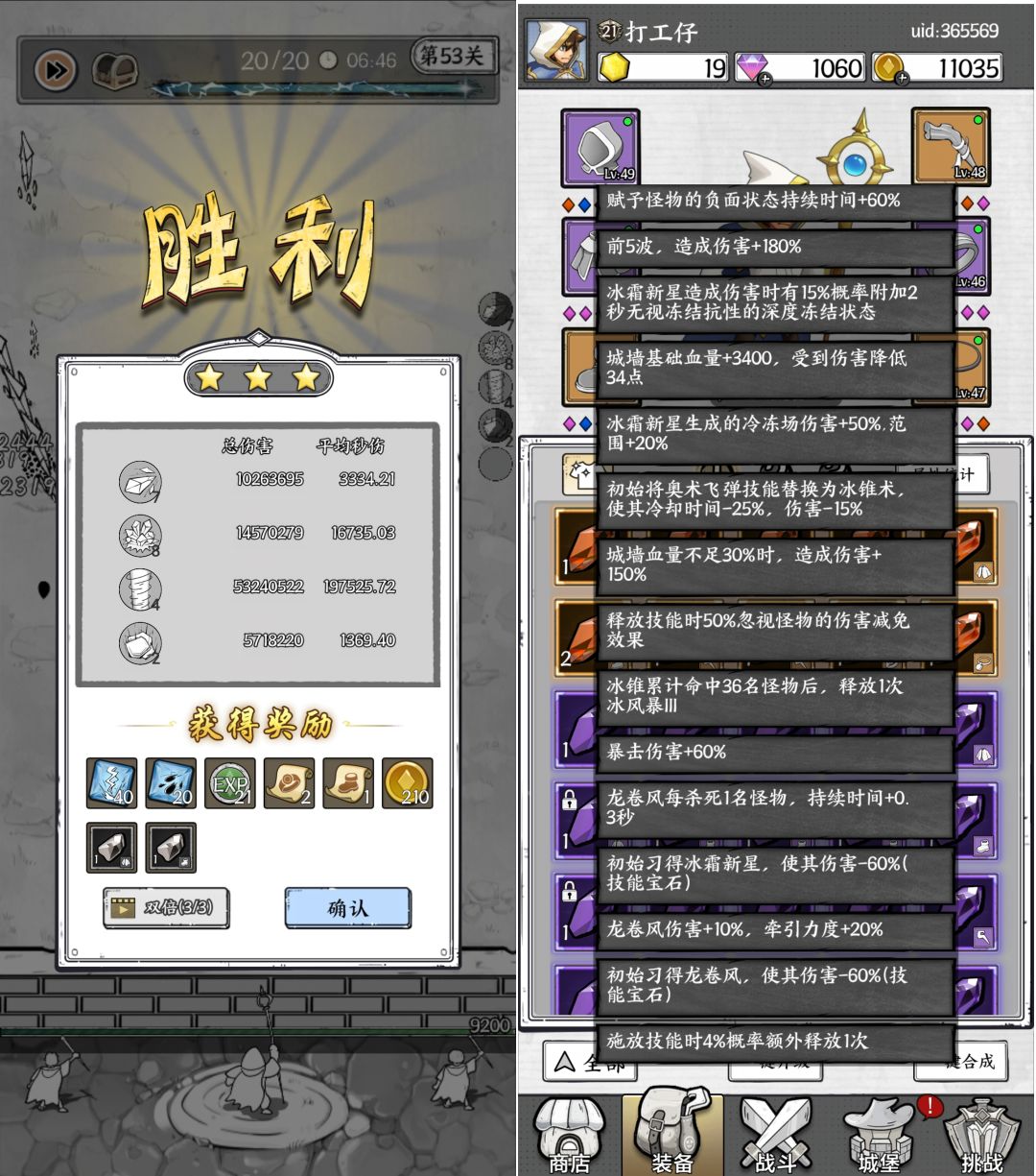 据说@天妒 在没有百分比宝石时,是以1600的基础攻击过关的(蓝冰+龙卷+榴弹)。