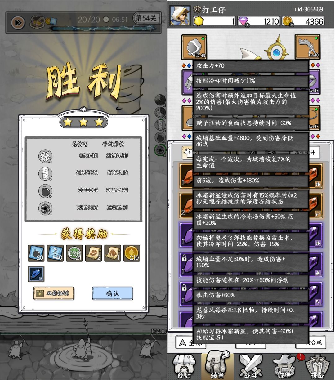基础攻击力1228 21级 使用城墙一