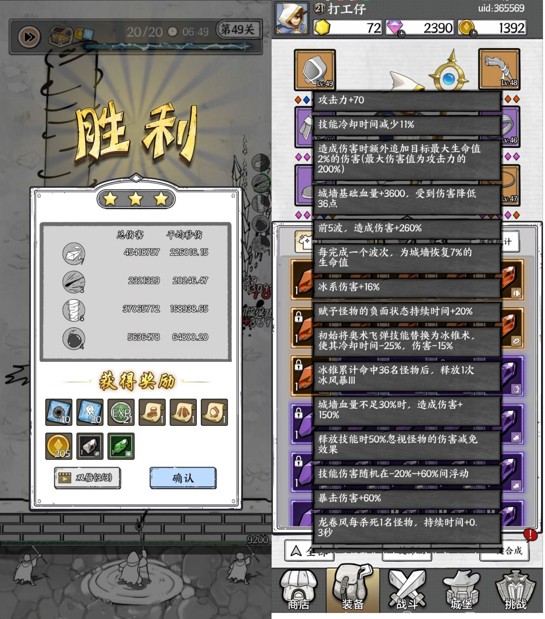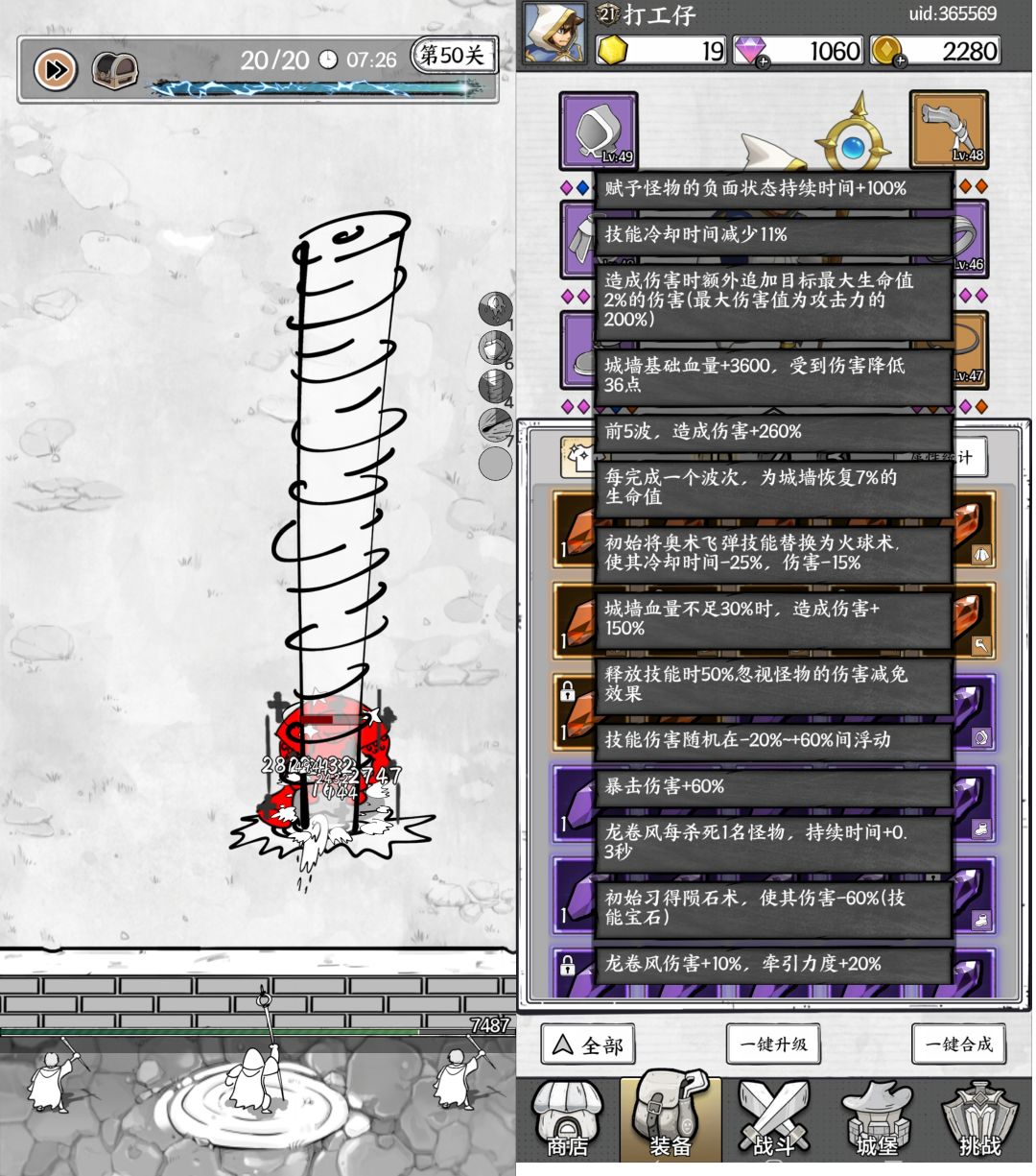 49关:兔子+火怪+大树 初始冰锥+聚焦+龙卷 主点龙卷