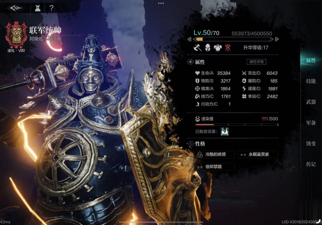 统帅和重铠卫士一般不缺物防,升华、铭文适当考虑优先魔防。统帅一般都是第三回合再放援护技能,衔接第五回合光环。