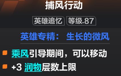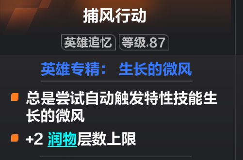 另外一种就是大量增加润物层数,使用乘风特性,这个一般要配合捕风行动。可以考虑一些增加生长值的词条