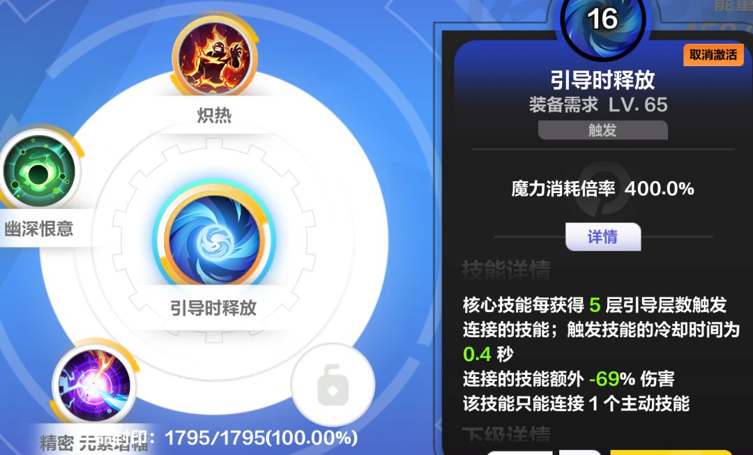 一般来说,特性可以有两条路线,如下面这种,大量减少失去润物的几率,那么我们至少要给魔灵增加14(14*3=42%)的等级