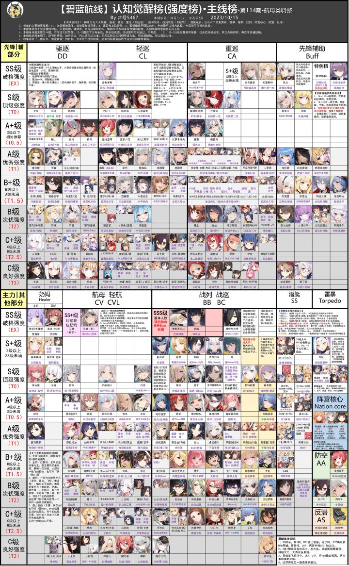 SS级,仅保留约克城II(白鹰航队核心)、信浓(重樱航队核心)、怨仇(最强减速/定身)