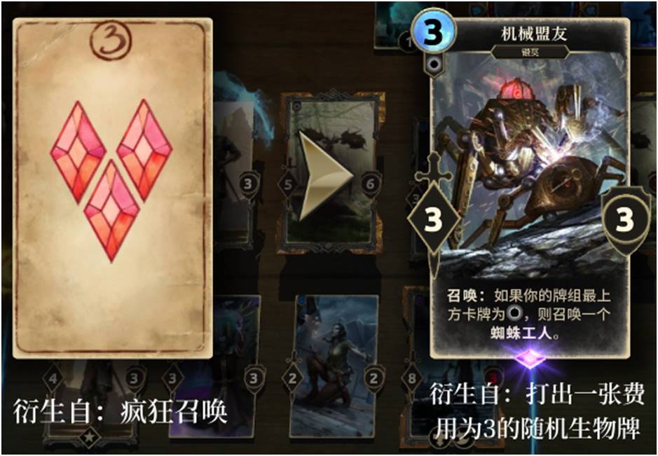 特殊卡面牌,效果均为召唤一张费用为X的随机生物牌,X为特殊卡面上的数字,区间为2-9,即8张不一样的牌。