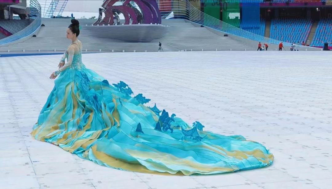 这条惊艳世界的“水天碧”长裙正是出自著名设计师楚艳之手。