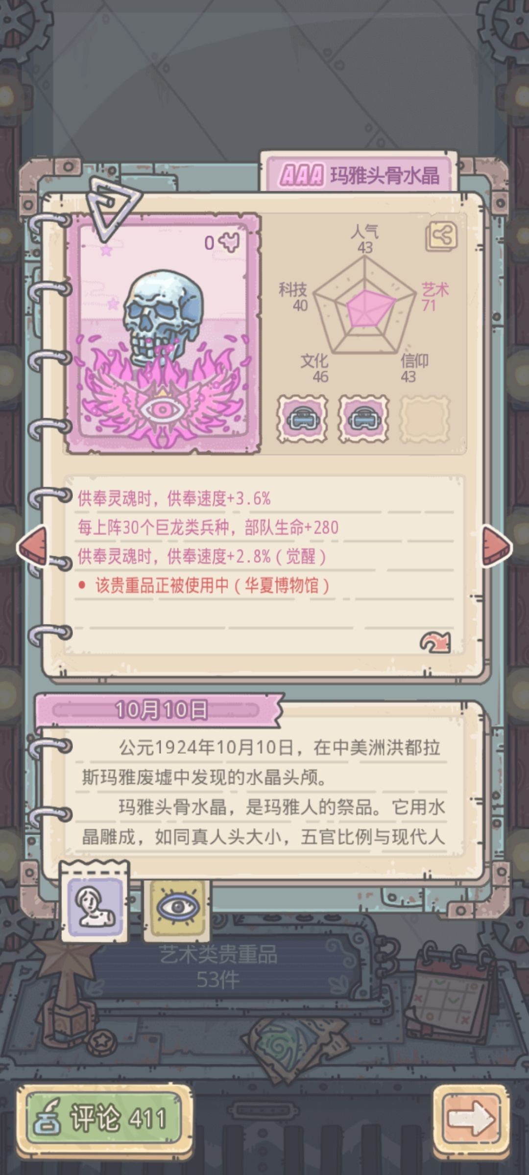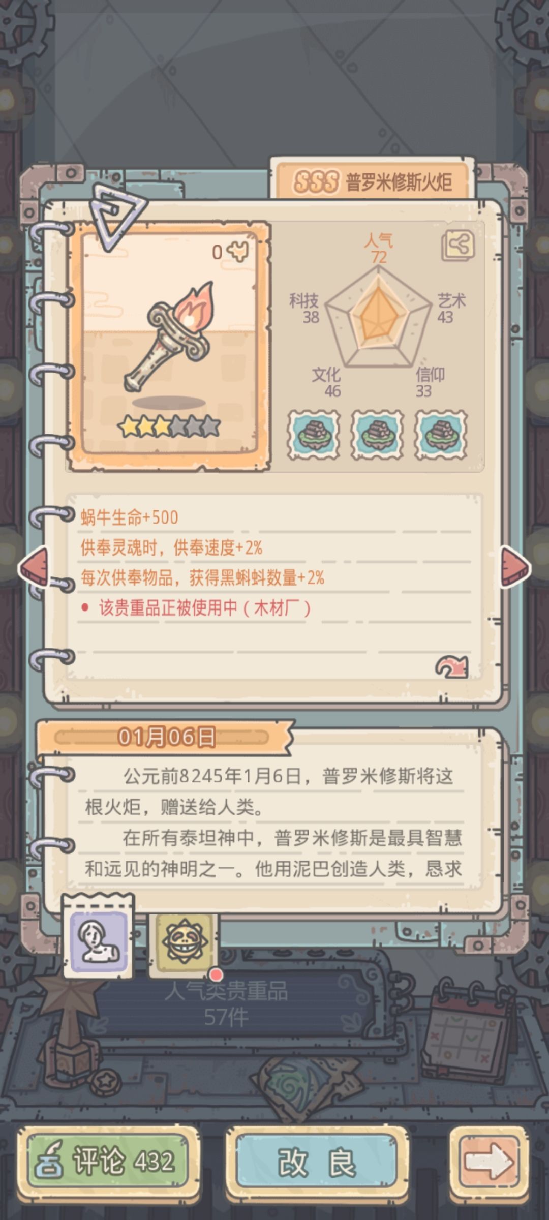 平民玩家的供奉加速。还有个直接加供奉速度的信仰蓝贵没有开出,火炬是因子换的,司母戊鼎是活动给的,共鸣也差一个等开出来就全部去觉醒,头骨紫贵运气好都满了。感觉8小时的进6小时还是有点希望的