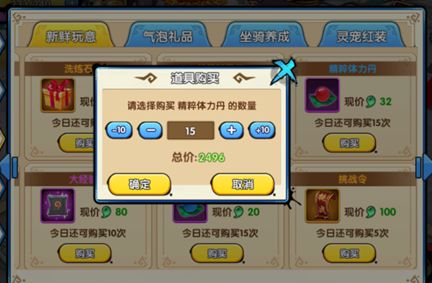 体力是升级的关键,新开的号要想升级就必须依靠大量体力丹,这就离不开购买体力丹了,那么每天买几次体力最划算? 体力丹第一个20,第二个30,每多买一次价格涨10,VIP等级越高购买的次数越多。目前游戏的VIP等级是12级,可以购买15次体力丹。