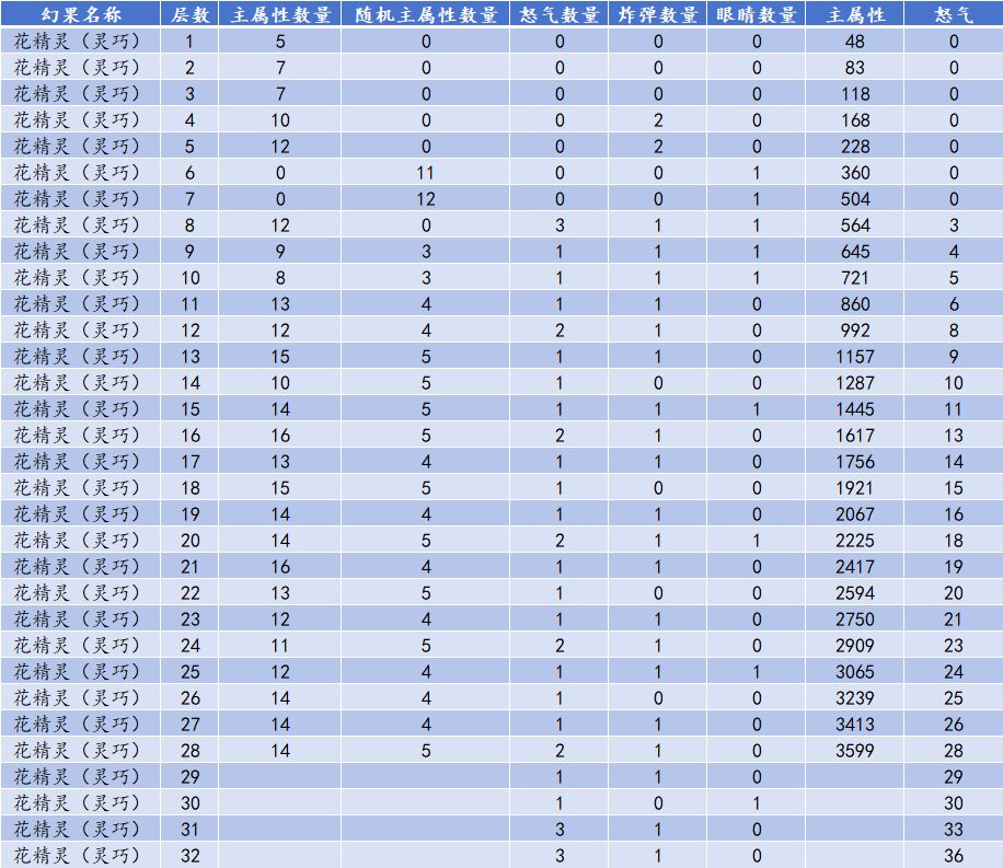 10.30 懒惰的我更新了一个花精灵的灵巧数据,顺便美化了一下表格