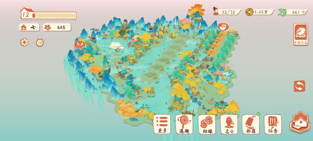 巴蜀建筑自带水的比较多整体下来大部分都是水地,而且12级竟然没有新建筑和多余空地…所以我的布局看起来比较紧凑也懒得整理了。