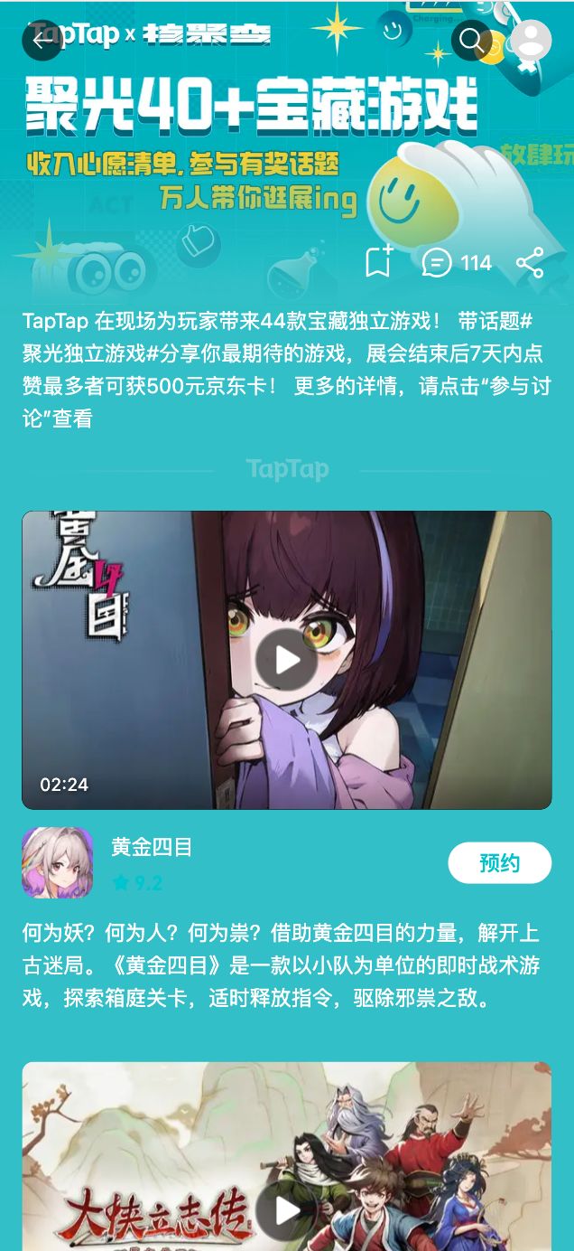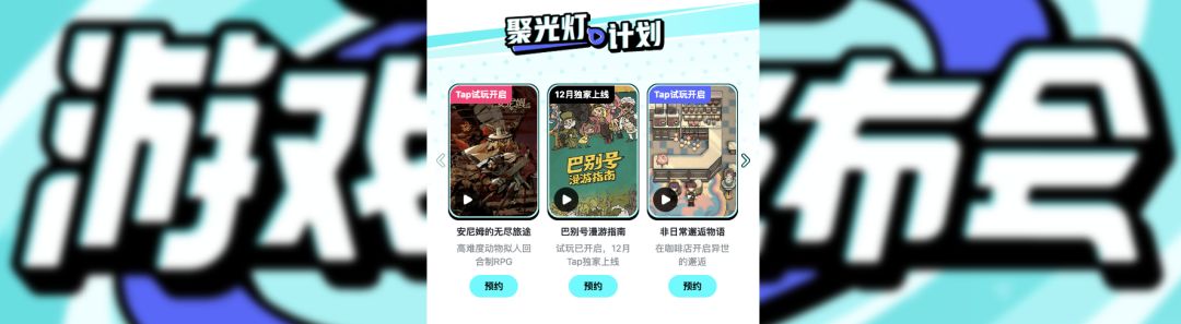TapTap聚光灯计划专为具有创意、新奇有趣的游戏设立,用灯光指引目光,用目光点亮新奇。我们希望通过这一计划,让更多值得被玩家注视的游戏作品和开发团队登上适合的舞台,获得更多关注和曝光的机会。截至目前,聚光计划已经帮助《巴别号漫游指南》、《黄金四目》、《非日常邂逅物语》等多款作品登上TapTap游戏发布会或前往线下展会现场。