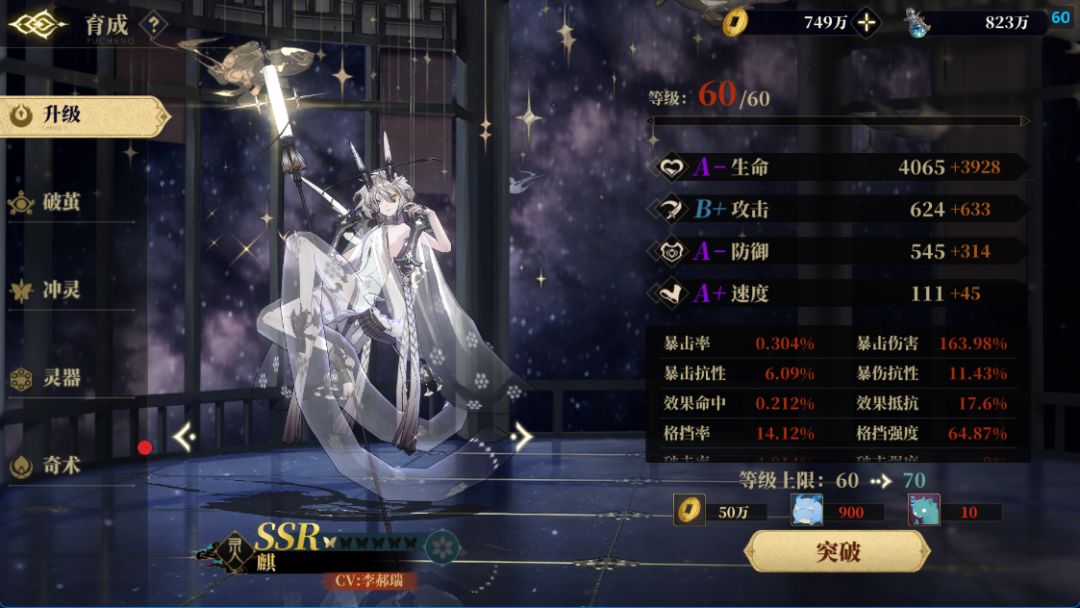三技能:麒的核心技能,但是目前有BUG(祥瑞祝福状态吃麒的效果命中,实际上没实装)所以高命中麒就算开出技能也可能挡不住对方施加的DEBUFF和控制效果。实测在生效情况下可以净化夔牛在队友行动回合开始的嘲讽。