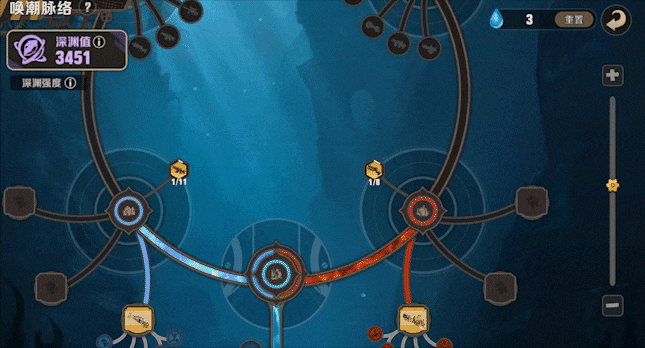 当大家成功通关后就能拿着每日奖励去升级唤潮之心啦!唤潮脉络中现在也新增了全新节点,激活后不仅能强化寒潮&炙涌的武器伤害,还能提升深渊值,进一步加强联合作战能力。
