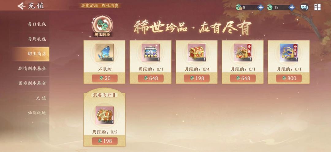 和绑玉商店的装备飞升箱内容和价格保持了一致