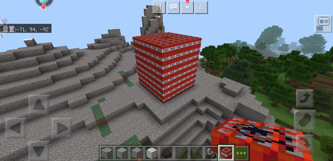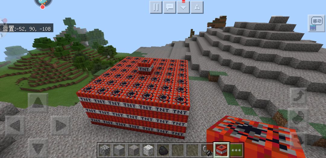 其中二图的那个突出TNT是需要被点燃的,视频和最后的图我没放上来,因为放不上来,但成果很喜人。成功将TNT利用最大化,如果你玩纯生存的话,又不想挖山,这个方法想必会很适合你。