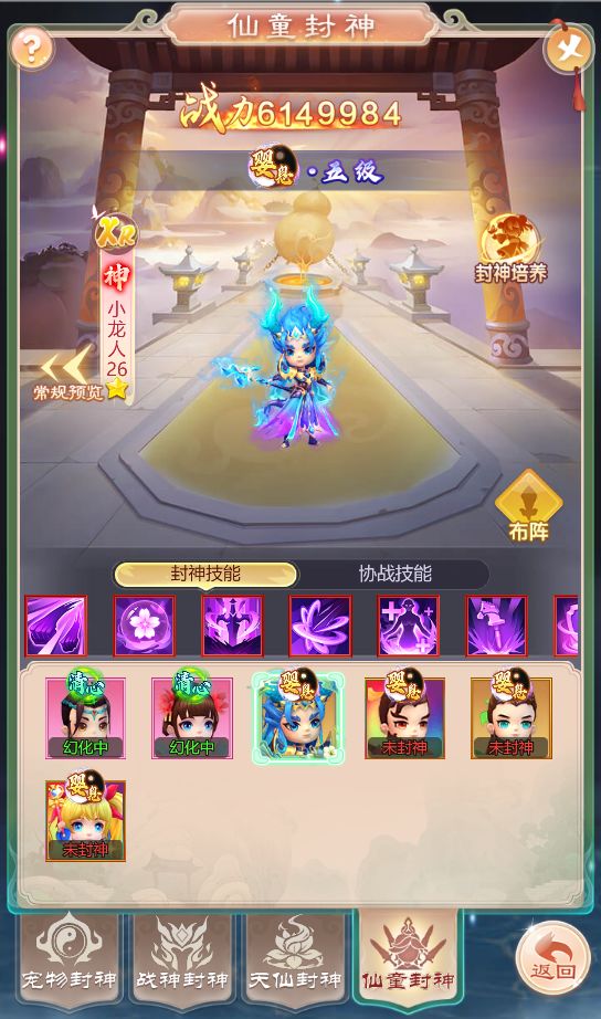 ◇仙童封神后除了属性提升,还会解锁新模型、协战技能、封神技能