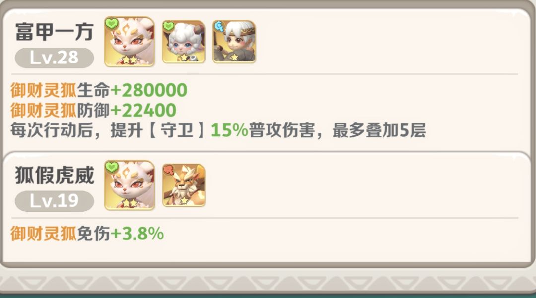 ※重要提醒,灵狐的羁绊也是特别重要,提升【守卫】普攻伤害。